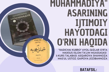Imom Termiziyning "Shamoili Muhammadiya" kitoblari islom olamida eng ko’p tarqalgan kitoblardan biri hisoblanadi. Ushbu kitob Nabiy sollallohu alayhi vasallamning shamoillari borasida yozilgan eng ulug‘ va foydali manba hisoblanadi. Imom at-Termiziy...