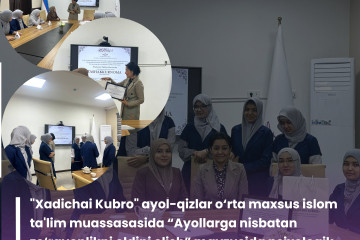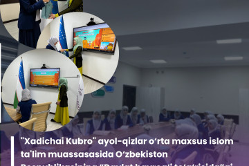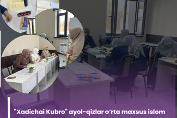 Joriy yilning 6 dekabr kuni "Xadichai Kubro" ayol-qizlar o‘rta maxsus islom ta'lim muassasasida 8-dekabr - “O‘zbekiston Respublikasi Konstitutsiyasi kuni”ga bag‘ishlangan "Konstitutsiya - Bosh qomusimiz" nomi ostidagi ma’naviy-ma’rifiy tadbir o‘tkazildi. Tadbir...