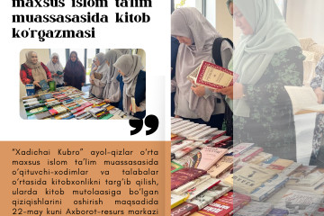 # Kitob_ko‘rgazma“2020-2025 yillarda kitobxonlik madaniyatini rivojlantirish va qo‘llab-quvvatlash milliy Dasturi”ni 2020-2021 yillarda amalga oshirish bo‘yicha “yo‘l xaritasi” ijrosini ta’minlash yuzasidan “Xadichai Kubro” ayol-qizlar o‘rta maxsus islom ta’lim muassasasida o‘qituvchi-xodimlar va...