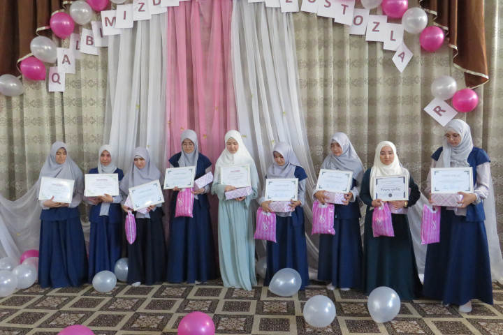 Qur'oni Karimni yodlashda peshqadam bo'lgan talabalar muassasa ma'muriyati tomonidan faxriy yorliq va esdalik sovg'alari bilan taqdirlandi. Bundan tashqari taqdirlash marosimida Qur'onni jamlash bo'yicha peshqadam qizlarimizning ikki nafarlariga o'quv shartnoma to'lovlarini yarimi ya’ni 50% va bir nafar talabaga esa o'quv shartnoma to’lovini to'liq ya’ni 100% ini to'lab berilishi munosabati bilan madrasa direktori tomonidan diplom va esdalik sovg'alari topshirildi.