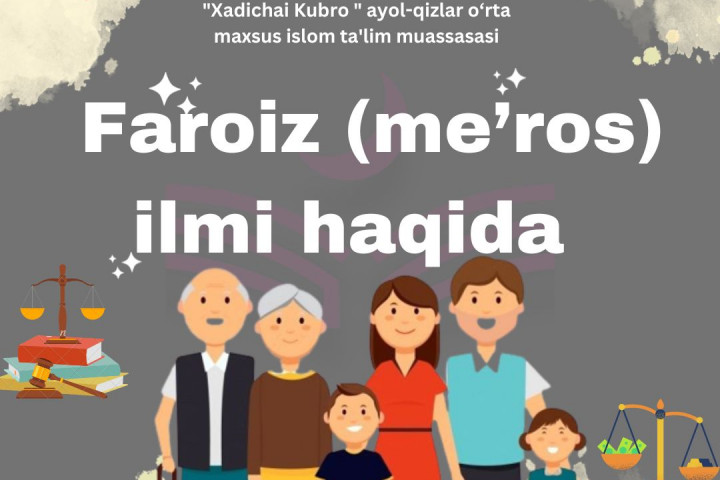 Payg’ambarimiz shunday marhamat qilganlar: “Ey Abu Hurayra Faroizni (Me’ros ilmini) o’rganib, uni o’rgatinglar, ze’ro u ilmning yarmidir va mening ummatimdan birinchi bo’lib unutilinadigan va birinchi bo’lib olinadigan narsadir” deganlar