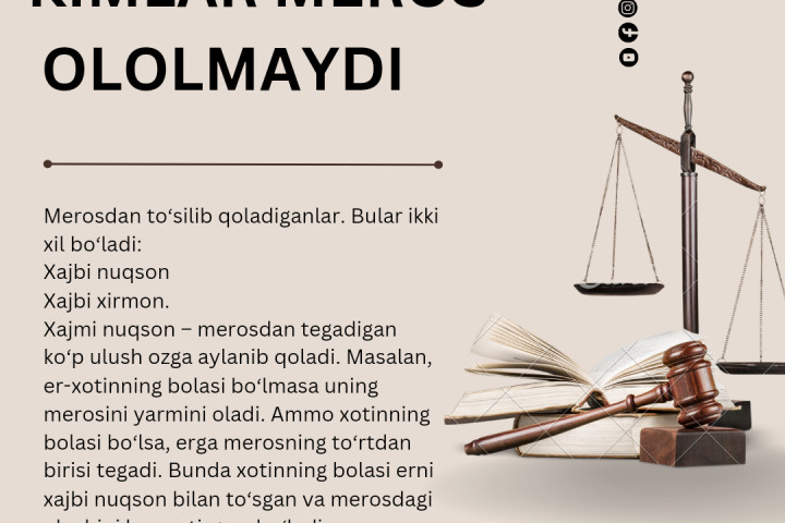 2.4 Ota bir opa-singillar, ular ota bir ona bir aka-ukalar va ikki ota bir, ona bir opa-singillar borligi bilan merosdan mahrum bo‘ladi.