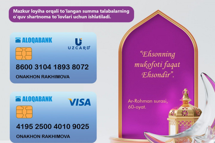 Ehson mablag'larini o‘tkazish uchun: