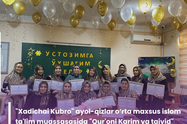 "Xadichai Kubro" ayol-qizlar o‘rta maxsus islom ta'lim muassasasida "Qur'oni Karim va tajvid" kursi tinglovchilarining bitiruv tadbirlari bo‘lib o‘tdi