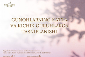 Gunohlarning katta va kichik guruhlarga tasniflanishi Insonni yo‘qdan bor qilgan va mavjudodlari ichida mukarram aylagan zot -Alloh taolodir. Alloh taolo insonga ham aql, ham nafs istaklarini bergan. Nafsi aqlidan ustun...