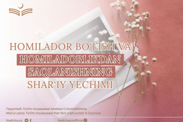 Homilador bo‘lish va homiladorlikdan saqlanishning shar‘iy yechimiInson hayotida nikoh, oila va farzand Alloh taoloning buyuk ne’matlaridandir. Qur’oni karimda Alloh taolo shunday marhamat qiladi: “U sizlar uchun o‘zingizdan juftlar yaratdi, toki...