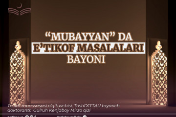 “Mubayyan”da e’tikof borasidagi hukmlar bilan tanishib chiqamiz. “Mubayyan”da e’tikofning ta’rifi va unga oid hukmlar quyidagicha kelgan: “Ramazon oyi, bilki, sunnatdur: so‘nggi ashrida e’tikof o‘ltur. Ushbu sunnat muakkadadur, bil, lek muni...