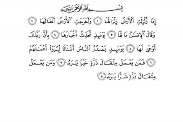 "Zalzala " surasining tafsiriZalzala surasi- Madinada nozil bo‘lgan. 8 oyatdan iborat.Ushbu surai karimaning ismi ham uning birinchi oyatidan olingan. "Zalzala" - "zilzila" deganidir. Bu yerda qiyomat qoim bo‘lgandagi ulkan zilzila...