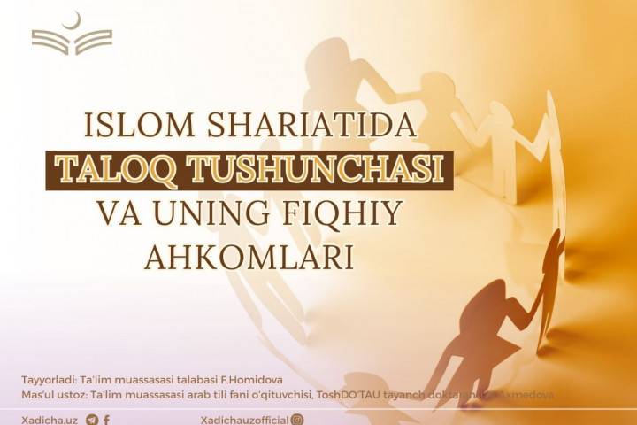 “Alloh azza va jalla nazdida halol narsalarning eng g‘azablisi (yoqimsizi) taloqdir”, deya marhamat qilganlar (Abu Dovud rivoyati). Ushbu maqolada taloqning shar’iy mohiyati, uning turlari va bu boradagi mas’uliyat xususida mo‘tabar manbalar, xususan, Hanafiy mazhabi fiqhiy asarlari asosida so‘z yuritamiz.