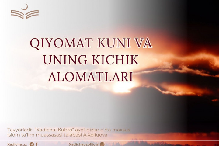 Har bir ins-u jins qilgan ishlaridan hisob-kitob qilinadigan, kim do’zaxga, kim jannatga kirishi aniq bo’ladigan, qalblarni qo’rquvga soladigan, foniy dunyoning abadiy yakuni bo‘lgan Qiyomat kuni haqida bilish va bu kunga tayyorgarlik ko‘rish har bir musulmon uchun shart va zarurdir. Ushbu muhim kun haqida Qur’oni Karimda ko’plab so‘z brogan, hadisi shariflar vorid bo‘lgan. Quyida aynan shu kunning katta va kichik alomatlari, vasfi haqida so‘z boradi.